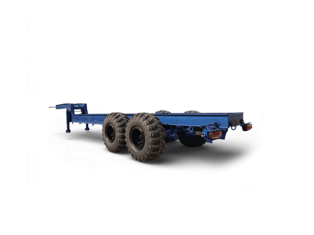 Двовісна балансирна ресорна підвіска забезпечує рівномірний розподіл навантаження та стійку роботу напівпричепа навіть при повному завантаженні, а великі шини підвищеної прохідності дозволяють ефективно експлуатувати його не лише на асфальтованих дорогах, а й на ґрунтових та промислових майданчиках. Гальмівна система KNORR BREMSE, опорний пристрій JOST та шкворінь SAF гарантують безпеку, надійність зчеплення і стабільну керованість у різних умовах експлуатації.